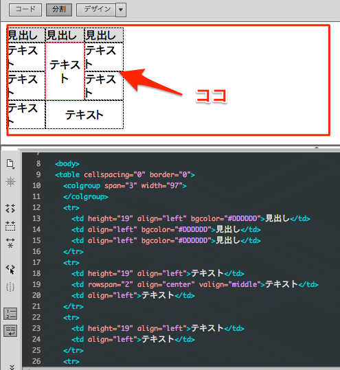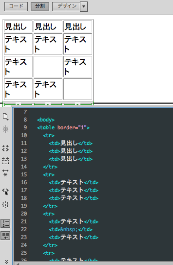 複雑なテーブルコーディングは、一度エクセルに入れてからDreamweaverで変換すると効率がいいですよ。